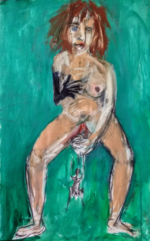 These paintings are barely illustrative, rather the materiality of the pigment in the oil paint reasserts the woman's sexuality and identity in her own terms as a power which has been repressed through religious superstition, witchcraft persecution, and gendered tradition.